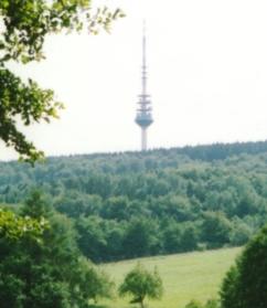 Der Fernmelde- u. Fernsehturm erbaut 1995 als Nachfolger eines Stahlgitterturmes. Gesamthöhe 148m